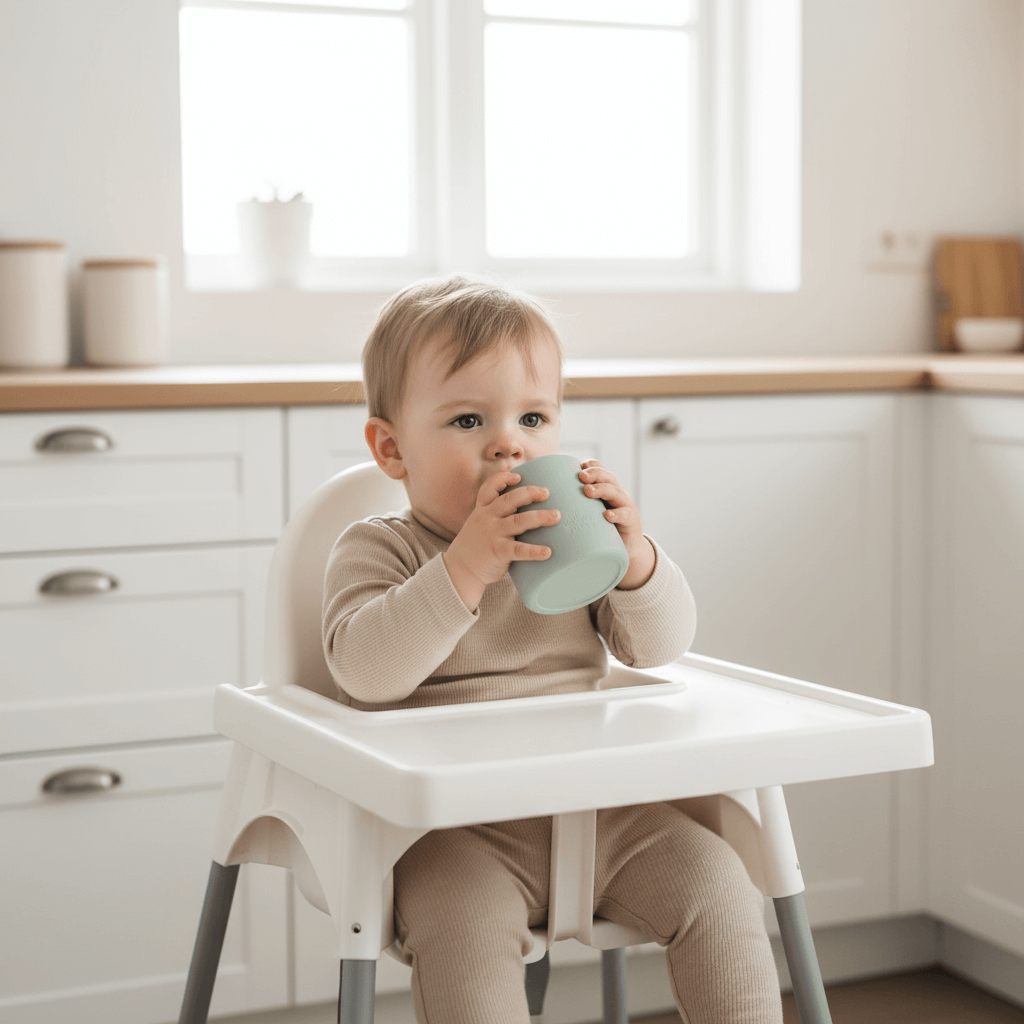 Das leichte, robuste Silikon ist angenehm weich, rutschfest und nahezu unzerbrechlich. Durch den etwas breiteren Rand lässt sich das Trinken besonders leicht üben und sicher durchführen. So können Kinder ihr Trinkverhalten spielerisch festigen und Eltern bleiben entspannter beim gemeinsamen Essen.