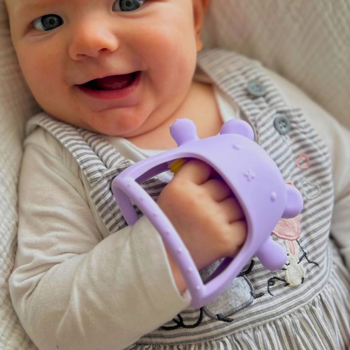 Der speziell geformte Griff ermöglicht es deinem Baby, den Greifbär sicher und bequem zu halten – perfekt, um Frust durch ständiges Fallenlassen zu vermeiden. Das weiche, lebensmittelechte Silikonmaterial ist sanft zum empfindlichen Zahnfleisch und massiert es beim Beißen, wodurch Schmerzen und Druckgefühle beim Zahnen gelindert werden.