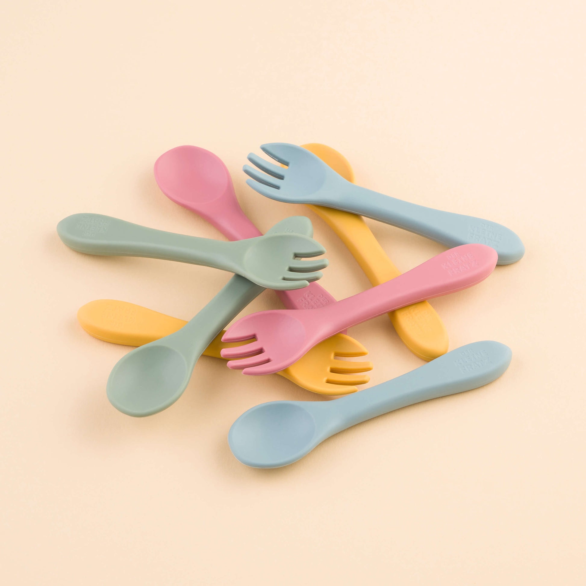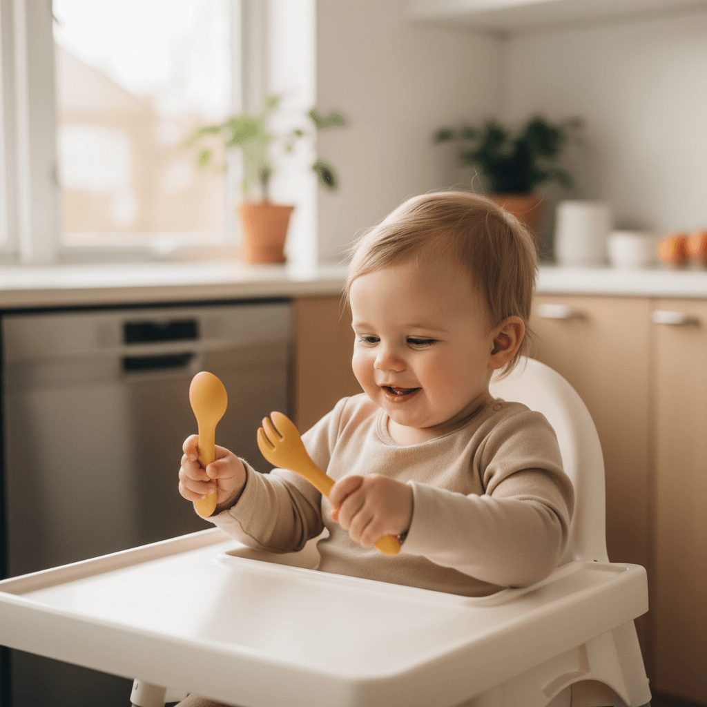 Die ergonomische Form liegt perfekt in kleinen Händen und ist ideal auf die motorischen Fähigkeiten von Babys und Kleinkindern abgestimmt. Dank des weichen, rutschfesten Silikons können Kinder das Besteck sicher greifen und eigenständig nutzen – ohne dass es zu schwer oder unangenehm ist.