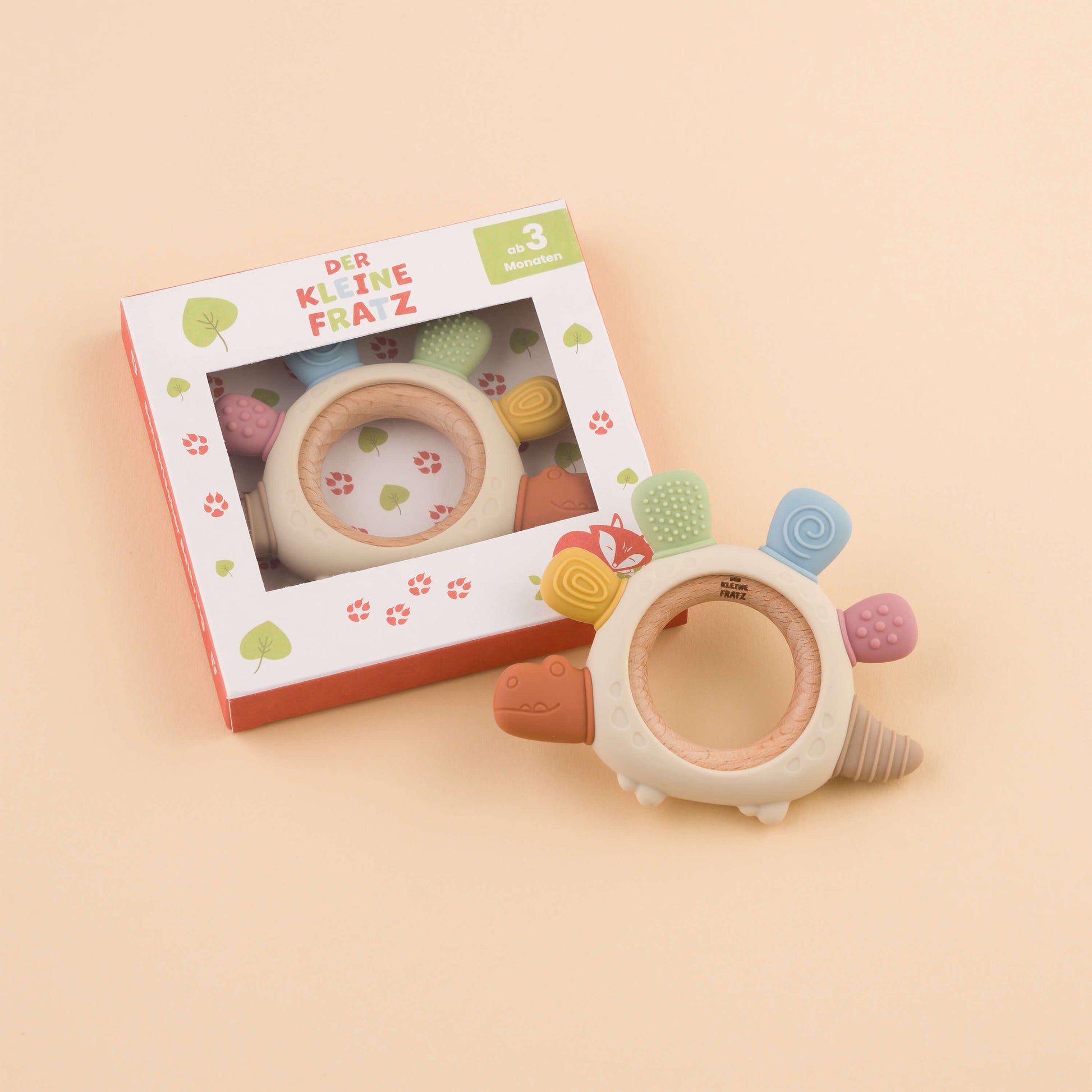 Sensorischer Beißring aus Holz und Silikon