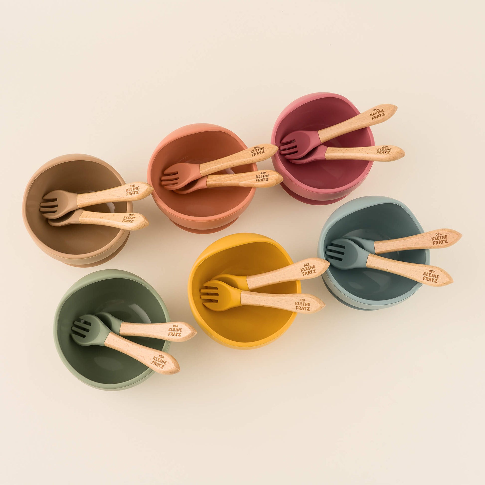 Hergestellt aus 100 % lebensmittelechtem Silikon und naturbelassenem Holz – frei von BPA, PVC und Phthalaten.