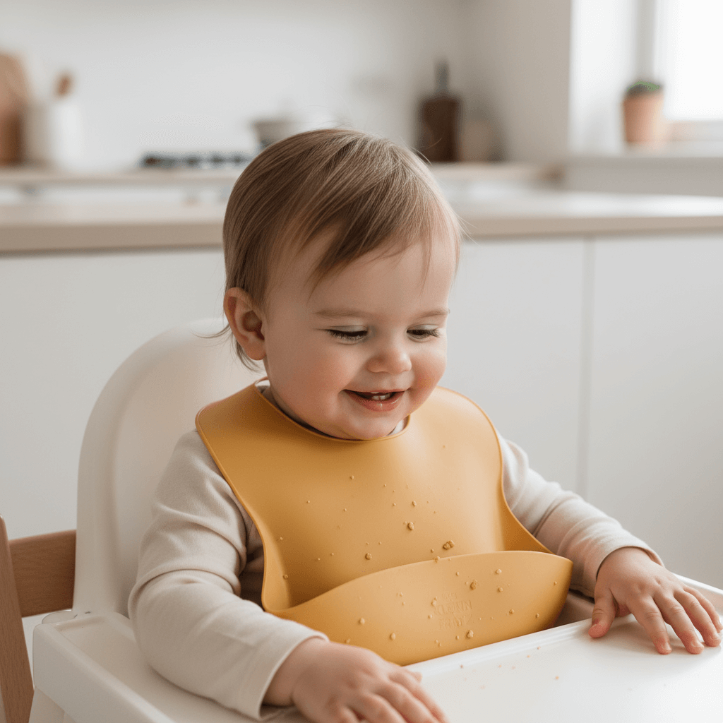 Unser Lätzchen aus Silikon ist der perfekte Begleiter für alle kleinen Entdecker, die das selbstständige Essen lernen. Das weiche, wasserdichte Material hält Kleidung zuverlässig sauber und sorgt dafür, dass Mahlzeiten stressfreier ablaufen.