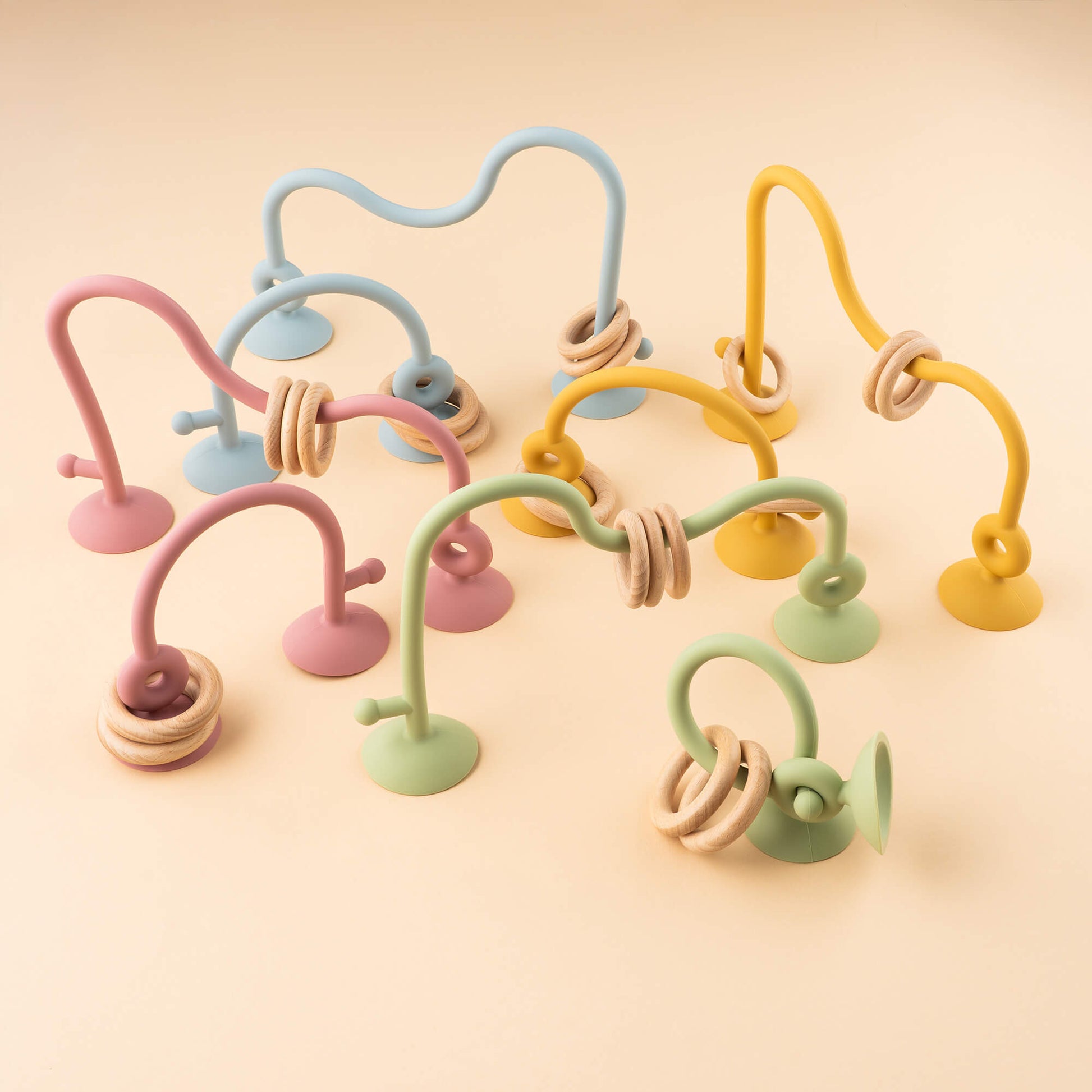 Die Motorikschleife mit Saugnapf ist das ideale Motorikspielzeug für Babys ab 6 Monate, um spielerisch die Feinmotorik, die Hand-Auge-Koordination und die Konzentration zu fördern. Mit den verschiebbaren Holzringen auf den flexiblen Silikonbahnen trainieren Babys gezielt ihre Fingerfertigkeit und entdecken spielerisch Formen und Bewegungen.